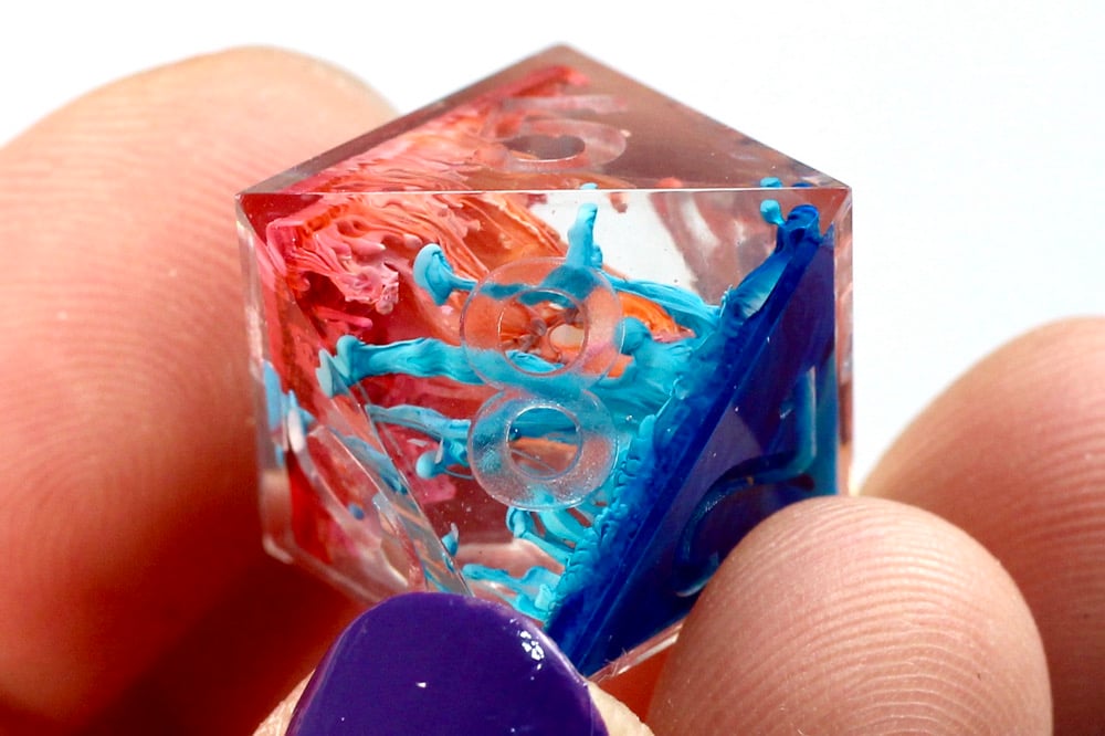 This dice set is hand made by me which means they will have small imperfections, rough edges, scuffs, paint flaws and maybe even bubbles. But that's how you know it's made by hand with love and dedication! Each set is made with high quality glitters, resins and pigments.