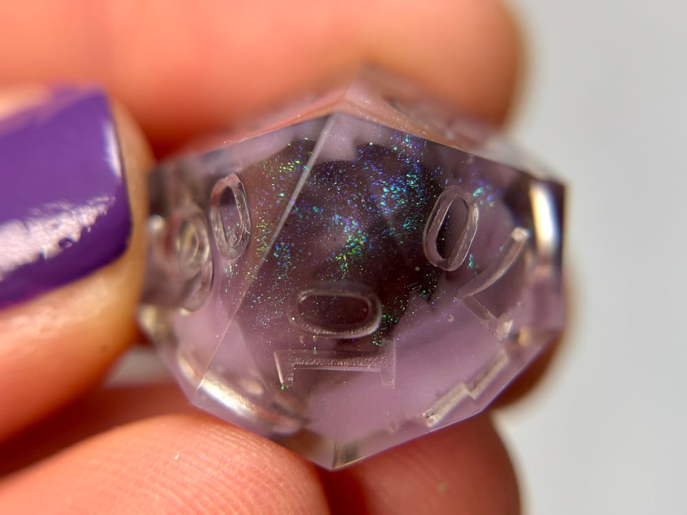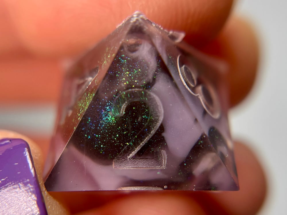 This dice set is hand made by me which means they will have small imperfections, rough edges, scuffs, paint flaws and maybe even bubbles. But that's how you know it's made by hand with love and dedication! Each set is made with high quality glitters, resins and pigments.