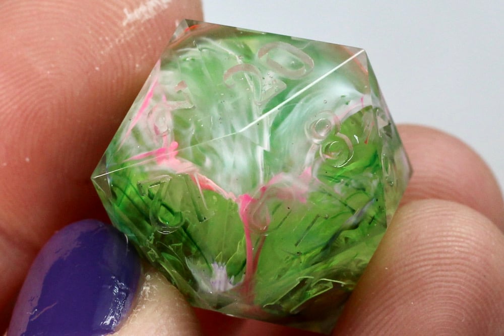 This dice set is hand made by me which means they will have small imperfections, rough edges, scuffs, paint flaws and maybe even bubbles. But that's how you know it's made by hand with love and dedication! Each set is made with high quality glitters, resins and pigments.