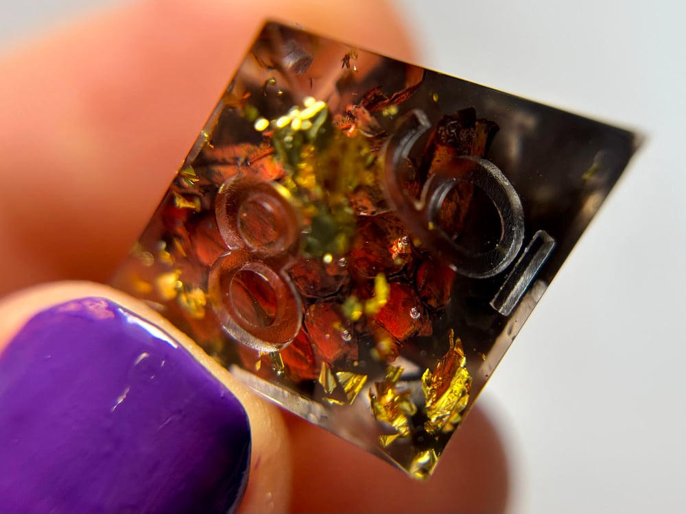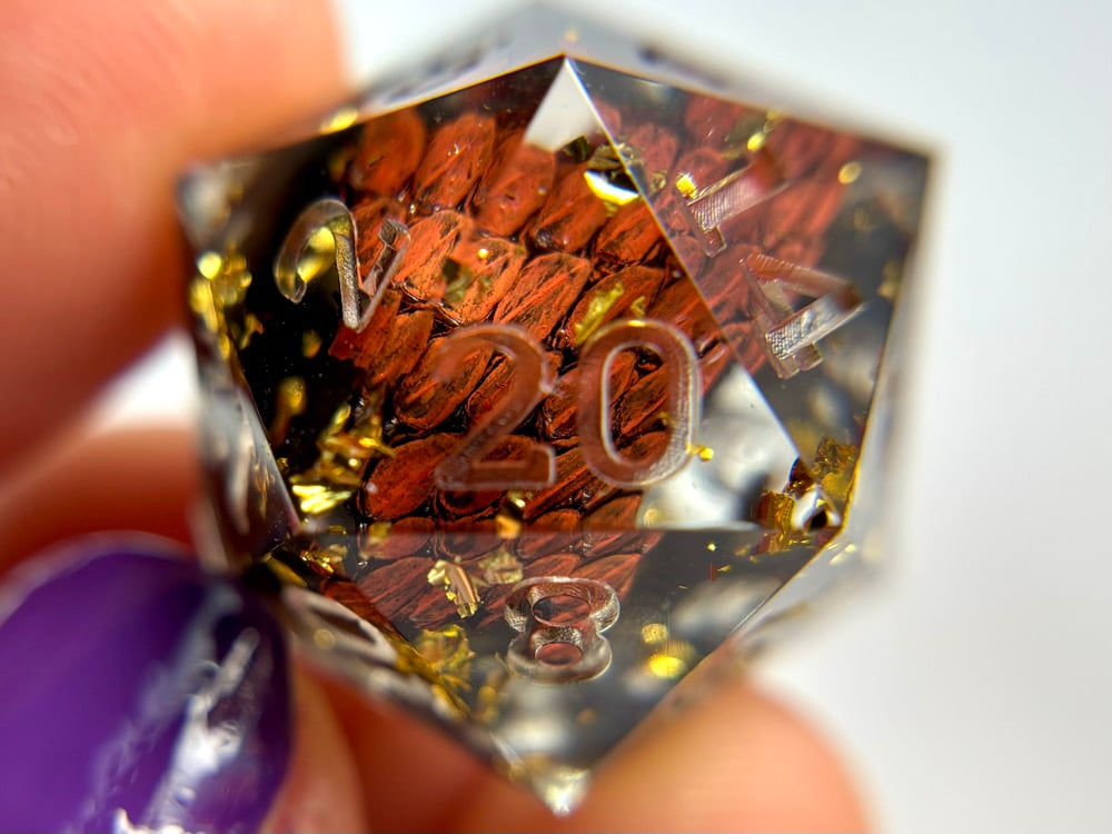 This dice set is hand made by me which means they will have small imperfections, rough edges, scuffs, paint flaws and maybe even bubbles. But that's how you know it's made by hand with love and dedication! Each set is made with high quality glitters, resins and pigments.