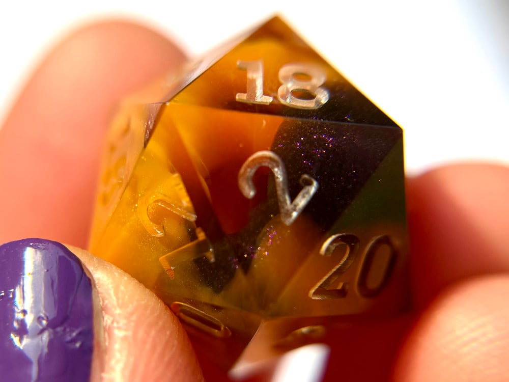 This dice set is hand made by me which means they will have small imperfections, rough edges, scuffs, paint flaws and maybe even bubbles. But that's how you know it's made by hand with love and dedication! Each set is made with high quality glitters, resins and pigments.