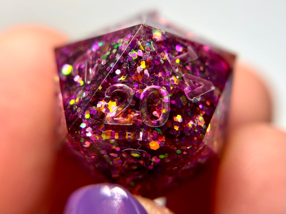 This dice set is hand made by me which means they will have small imperfections, rough edges, scuffs, paint flaws and maybe even bubbles. But that’s how you know it’s made by hand with love and dedication! Each set is made with high quality glitters, resins and pigments.